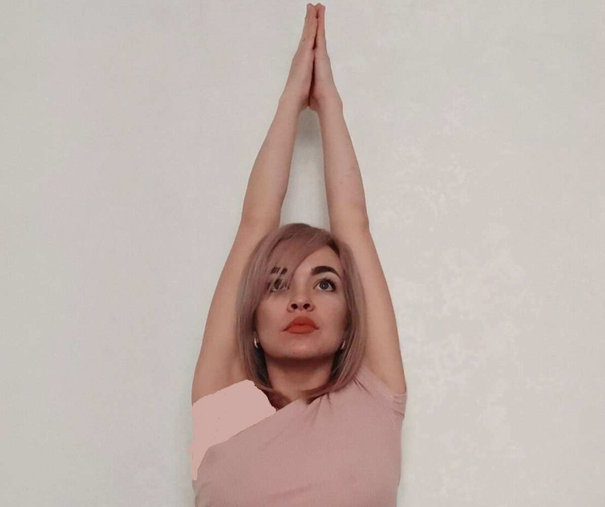سطح دشواری بعدی این است که بازوهای خود را مستقیماً بالای سر خود ببرید و با نوک انگشتان خود تا جایی که ممکن است به بالا برسید. 15 دقیقه در این موقعیت بمانید.