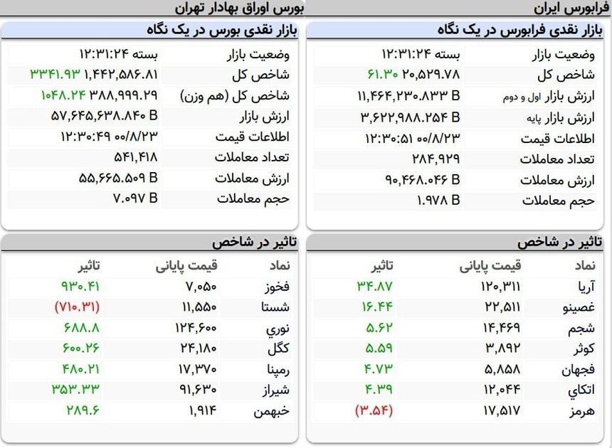 امروز در فرابورس ایران هم شاخص کل با رشد 61 واحد به رقم 20 هزار و 529 واحد رسید.