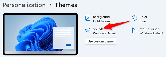 در قسمت بالای صفحهی Themes روی گزینهی Sounds کلیک کنید.