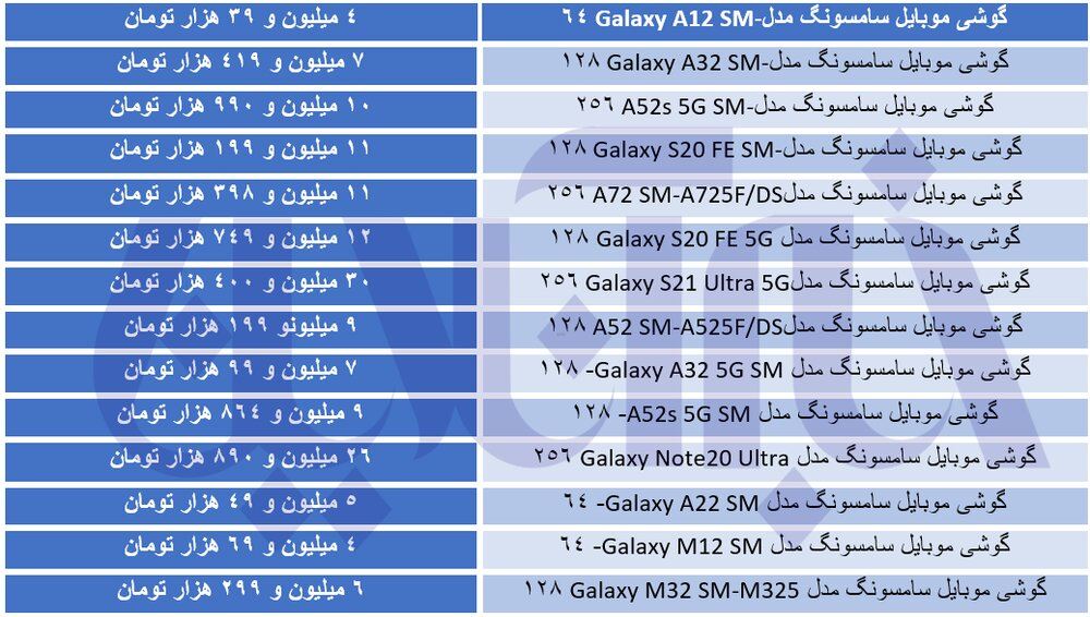 به گزارش سایت طلا،در بین تلفن های همراه سامسونگ بازار سامسونگ گلکسی آ۱۲ با ظرفیت ۶۴ گیگابایت از ۳ میلیون و ۹۷۰ هزار تومان در هفته گذشته امروز به ۴ میلیون و ۳۹ هزار تومان رسیده است و سامسونگ گلکسی آ۷۲ با ظرفیت ۲۵۶ نیز از ۱۱ میلیون و ۳۰۰ هزار تومان در هفته گذشته امروز به ۱۱ میلیون و ۳۹۸ هزار تومان رسیده است و سامسونگ گلکسی نوت ۲۰ الترا با ظرفیت ۲۵۶ گیگابایت نیز از ۲۵ میلیون و ۶۰۰ هزار تومان در هفته گذشته امروز به ۲۶ میلیون و ۸۹۰ هزار تومان رسیده است.
