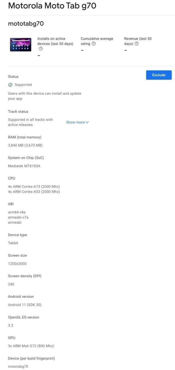 موتورولا موتو تب G70 با چیپ Kompanio در کنسول گوگل پلی رویت شد