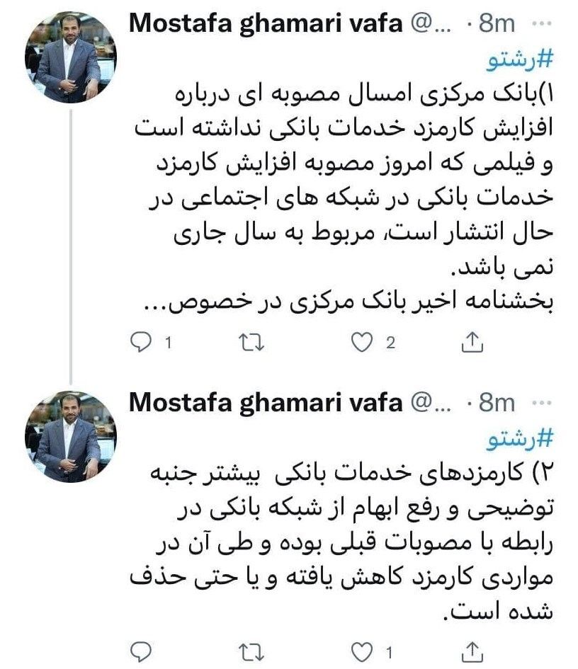 به گزارش سایت طلا، مصطفی قمری وفا مدیرکل روابط عمومی بانک مرکزی نوشت: بانک مرکزی امسال مصوبه ای درباره افزایش کارمزد خدمات بانکی نداشته است و فیلمی که امروز با موضوع مصوبه افزایش کارمزد خدمات بانکی در شبکه های اجتماعی در حال انتشار است مربوط به سال جاری نمی باشد.