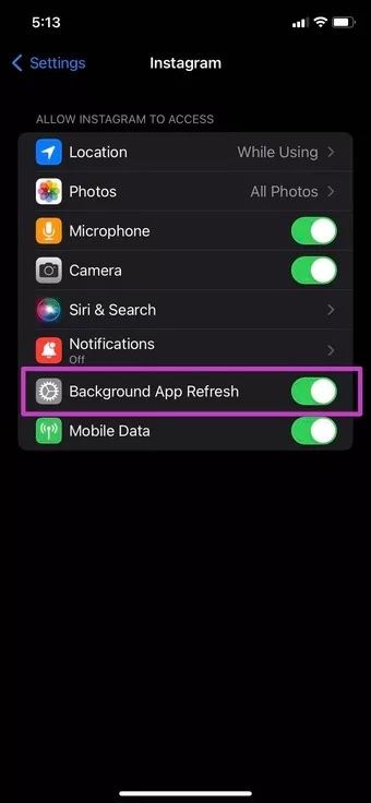 زمانی که ویدیوهای حجیم را به عنوان یک پست اینستاگرام درون این شبکه اجتماعی آپلود میکنید، آن را باید روی آیفون باز نگه دارید. اگر به صفحه هوم برگردید، احتمالا اینستاگرام به شما خطا میدهد. برای جلوگیری از چنین مشکلی، بهترین کار این است که قابلیت تازهسازی اپ در پس زمینه یا Background App Refresh را از طریق تنظیمات برای اینستاگرام فعال کنید. برای اینکار مراحل زیر را دنبال کنید: