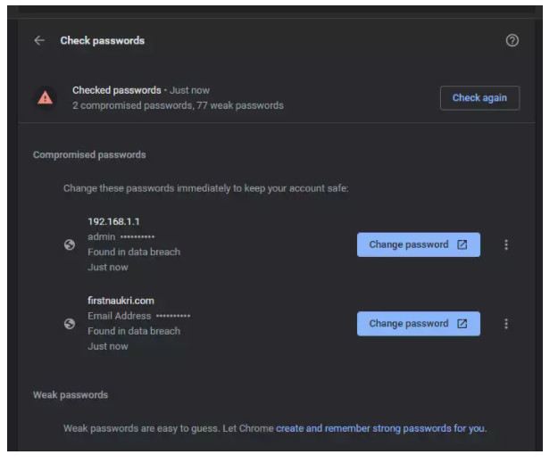 یک رمز عبور در معرض خطر می تواند آسیب های زیادی را به روش های غیرقابل تصوری وارد کند. بنابراین، برای محافظت از این اتفاق، گوگل یک لایه امنیتی اضافی را به مرورگر وب کروم خود اضافه کرده است، مانند ابزار Password Checker که می تواند وضعیت همه رمزهای عبور ذخیره شده و همگام سازی شده در مرورگر را به کاربران اطلاع دهد.