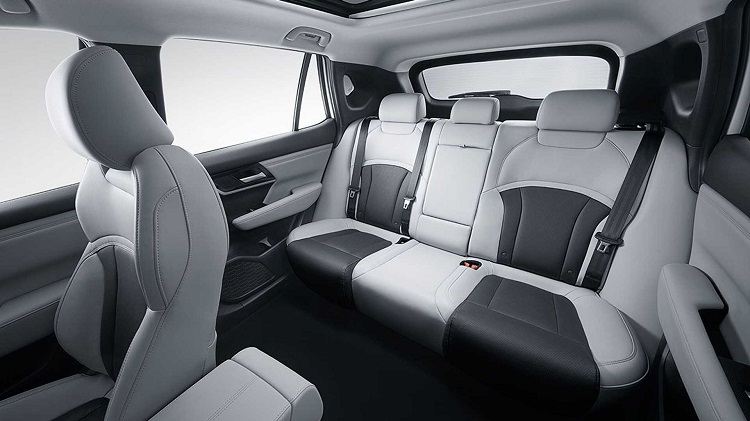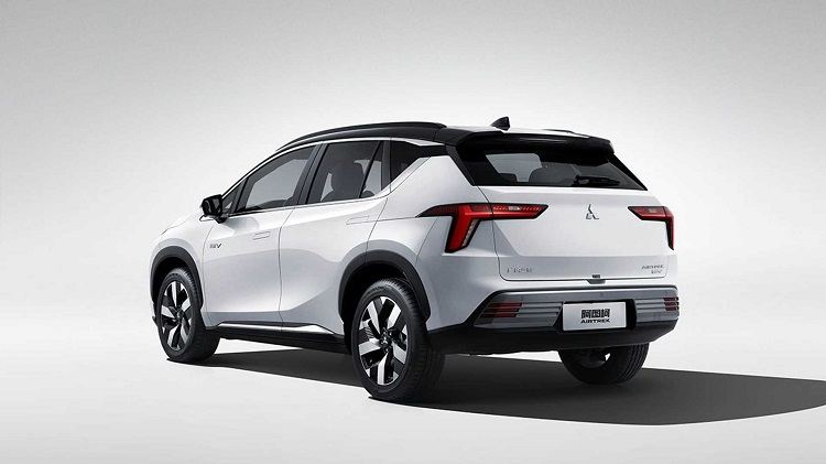 با حرکت به سمت عقب این خودرو، چراغها ما را به یاد خودروی Skoda Karoq میاندازند و طراحی میتسوبیشی در اینجا احتمالاً شکل چراغهای جلو را تقلید میکرد. لوگوی "EV" بار دیگر روی درب عقب ظاهر میشود، جایی که مارک و مدل خودرو به زبان چینی نوشته شده است. روکش خاکستری جلوپنجره جلویی در قسمت پشت برای تریم پلاستیکی سپر که با سه بازتابنده روی هم در هر طرف نصب شده، ادامه مییابد.
