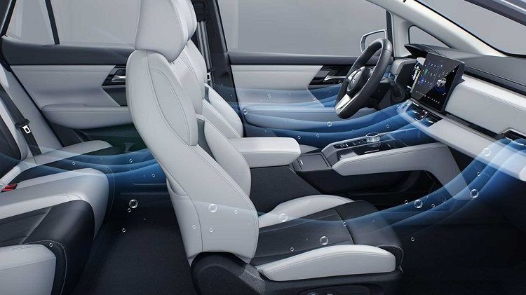 فضای داخلی بسیار ساده است به این معنا که اکثر کنترلها در صفحه نمایش لمسی بزرگ جای داده شده اند. یک دسته ابزار دیجیتال بزرگ نیز تعبیه شده است که دارای فناوری واقعیت افزوده برای سیستم ناوبری است. کراس اوور جدید Airtrek به لطف پلت فرم الکتریکی اختصاصی خود با کف کاملاً مسطح و فاصله بین دو محور زیاد، در قسمت عقب کاملاً جادار جلوه میکند.