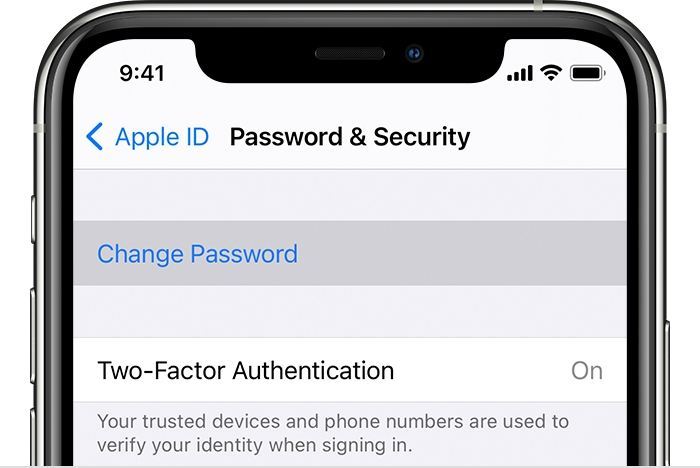 ۴) روی تعویض رمز عبور ضربه بزنید. پیش از تغییر رمز عبور اپل آیدی، ملزم خواهید بود رمز عبور دستگاه خود را وارد کنید.