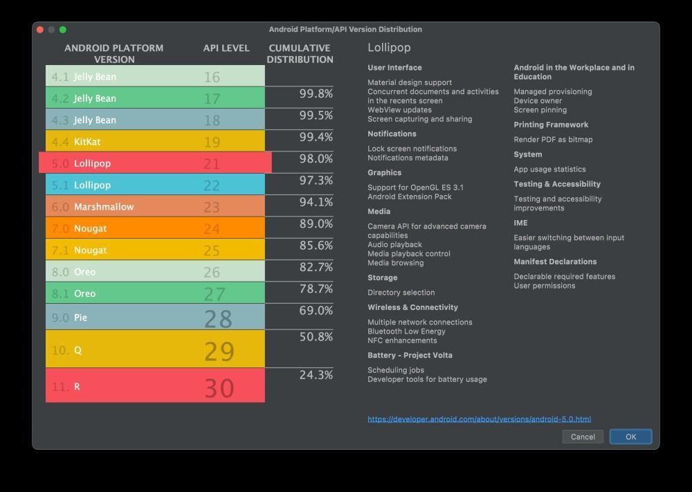 گوگل آخرین بار آمار توزیع اندروید را در ماه آوریل سال ۲۰۲۰ منتشر کرده بود. این اطلاعات از طریق پلتفرم Android Studio منتشر شده که نرمافزار پیشنهادی گوگل برای توسعه اپلیکیشنهای اندروید است. این شرکت مدعی است که آمارهای یاد شده برای توسعهدهندگان اپلیکیشن اهمیت زیادی دارد چون نشان میدهد که باید بیشترین تمرکز را روی کدام نسخهها بگذارند. پیشبینی میشود که گزارش بعدی در سال ۲۰۲۲ منتشر شود.
