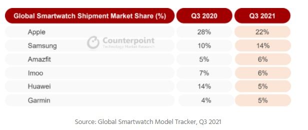 با نگاهی به وضعیت بازار گجتهای پوشیدنی در سه ماهه سوم ۲۰۲۱ میتوان گفت که در این فصل نسبت به مدت مشابه سال قبل، سامسونگ توانسته است از هواوی پیشی بگیرد و در جایگاه دوم بازار قرار بگیرد. این در حالی است که Amazfit به لطف محبوبیت خوبی که در بازار اروپا دارد، توانسته جایگاه سوم را به خود اختصاص دهد.