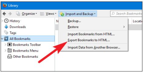 برای جلوگیری از دست دادن بوکمارک های مهم و جدید، می توانید قبل از بازیابی نسخه پشتیبان از گزینه Export Bookmarks to HTML نیز استفاده کنید. پس از بازیابی نسخه پشتیبان، می توانید فایل HTML را وارد کنید یا آن را در فایرفاکس مشاهده کنید.