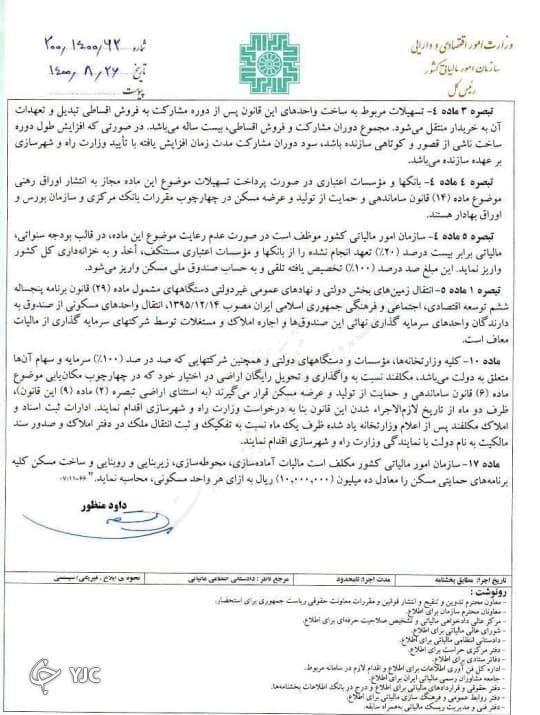 احکام مالیاتی قانون جهش تولید مسکن ابلاغ شد