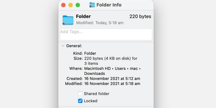 اکنون آیتم انتخاب شده قفل میشود و نیازی به طی کردن مراحل اضافی دیگر نخواهد بود. برای بازگرداندن به حالت قبلی هم تنها کافیست تا دوباره تیک گزینه Locked را در پنجره Get Info بردارید. فایلها و فولدرهای قفل شده همیشه آیکن کوچکی در کنار خود خواهند داشت که شناسایی آنها را آسانتر میکند.