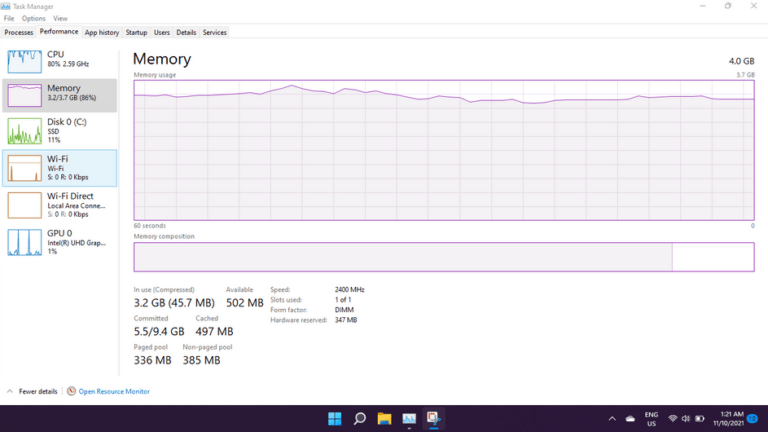 گویا مایکروسافت در اعلام مشخصات حداقلی برای اجرای ویندوز ۱۱ بهدرستی عمل کرده است، زیرا ۴ گیگابایت حافظهی رم واقعا از پس اجرای حداقلها برمیآید. شما میتوانید روی سیستمی با این میزان حافظهی رم، ویندوز ۱۱ را نصب کنید. این سیستم عامل تقریبا عملکرد پایداری خواهد داشت و کاملا غیرقابلاستفاده نخواهد بود.