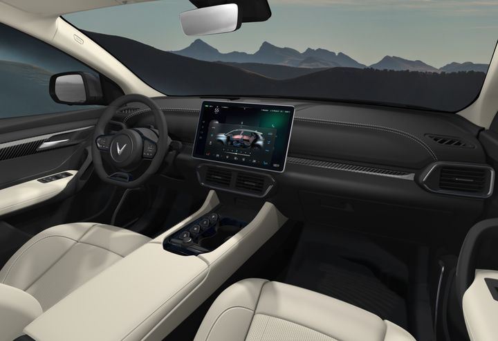 وینفست VF e35 در داخل کابین نیز طراحی بروزی دارد. بیشک نمایشگر بزرگ ۱۵.۴ اینچی حاضر در قسمت میانی داشبورد، اصلیترین عنصر این بخش است. درست مثل تسلا مدل ۳ این خودرو نیز فاقد نمایشگر پشت فرمان بوده و نمایشگر مذکور وظیفه ارائه تمامی اطلاعات و کنترل تجهیزات مختلف را بر عهده دارد.
