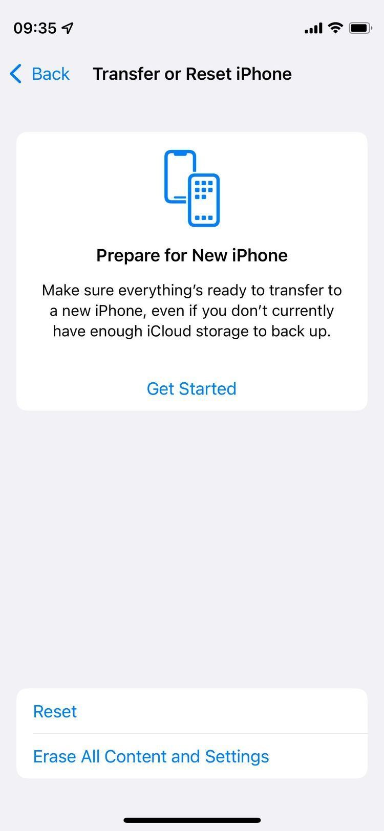 به سمت پایین اسکرول کنید تا گزینه Transfer of Reset را ببینید.
