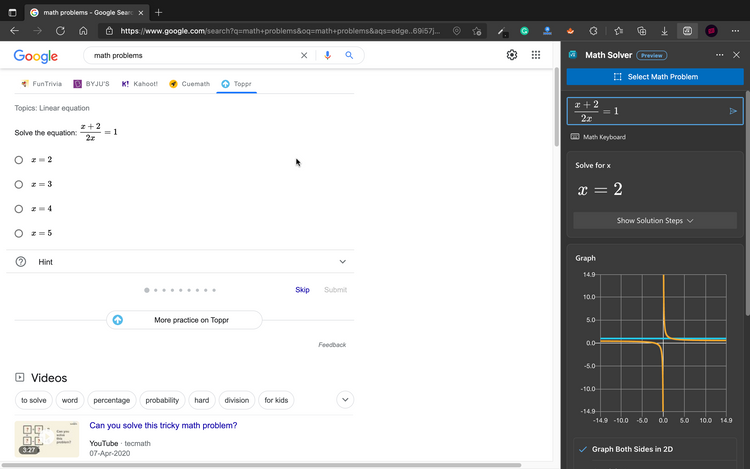 ابزار مایکروسافت Math Solver یکی از روشها برای حل معادلات و مسئلههای ریاضیاتی است که کاربران میتوانند از آن بدون خروج از مرورگر، استفاده کنند. از آنجایی که قابلیت مذکور به صورت بومی و داخلی درون مرورگر تعبیه شده است، نیازی به دانلود افزونه یا نرم افزارهای اضافی جهت بهرهگیری از امکانات گفته شده، وجود نخواهد داشت.