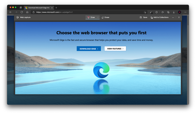 مرورگر مایکروسافت اج میتواند از صفحات موجود در وب، اسکرینشات تهیه کند و کاربر نیز امکان انتخاب ناحیه موردنظر برای ثبت تصویر را خواهد داشت. برای اسکرینشات گرفتن از یک صفحه یا وبسایت در اج، میتوانید از کلید ترکیبی Ctrl + Shift + S به صورت همزمان استفاده کنید. همچنین به کمک قابلیت کشیدن و رها کردن (Drag & Drop) قادر خواهید بود تا قسمت دلخواه از صفحه را درنظر بگیرید.