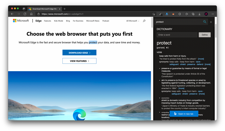 قابلیت نوار جستجوی کناری به کاربران اجازه میدهد تا بدون ترک صفحه و باز کردن تب جدید، به جستجو پیرامون یک کلمه یا جمله خاص بپردازند. برای استفاده از این قابلیت، ابتدا کلمه یا جمله موردنظر خود را انتخاب کنید و سپس با راست کلیک روی آن، گزینه Search in Sidebar for را که از منو پدیدار شده، انتخاب کنید. در ادامه با دوبار کلیک روی هر کلمه میتوانید آن را به سرعت انتخاب کنید.