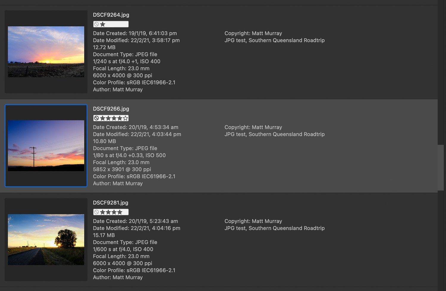 در مجموع، هر دو برنامه برای نمایش فایلها عالی هستند. ولی Brdige گزینه بهتری است. یک مزیت لایت روم، امکان نمایش سریعتر تصاویر است. بهصورت پیشفرض، هر دو نرمافزار تصاویر را در قالبهای بندانگشتی نمایش میدهند. اگر در محیط لایت روم روی این تصاویر ۲ مرتبه کلیک کنید، در همین محیط نشان داده میشوند. ولی اگر در بریج دومرتبه روی آن کلیک کنید، تصاویر در نرمافزار فتوشاپ باز میشوند.