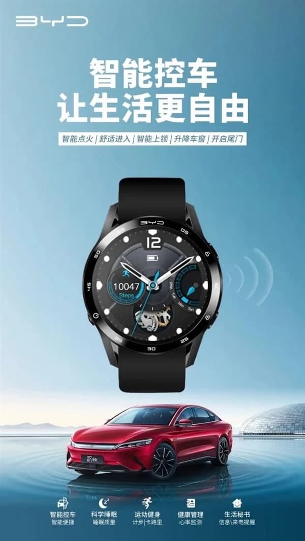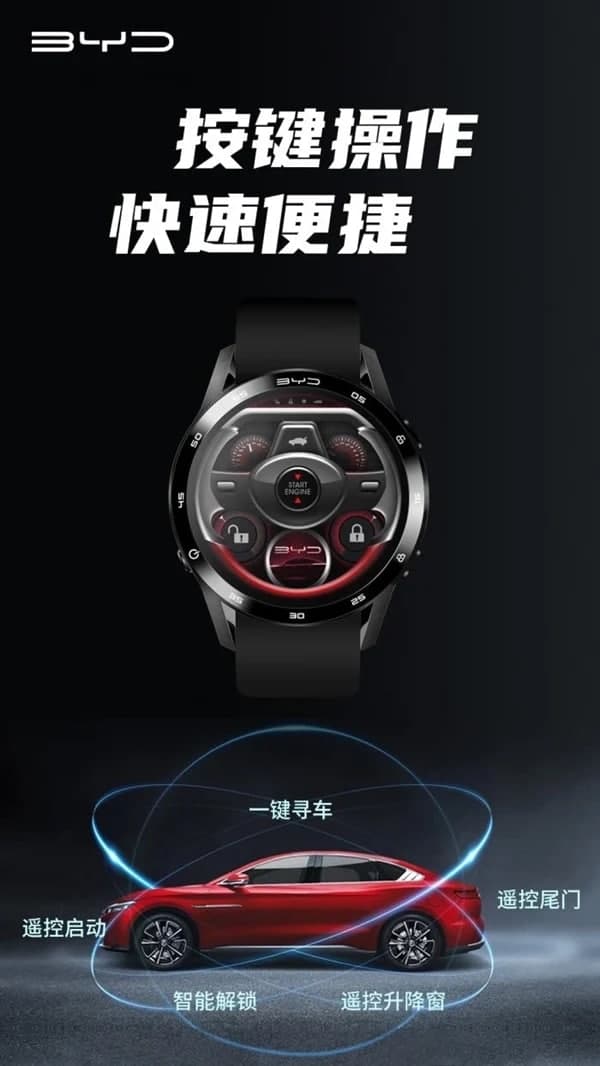 طبق اخبار منتشر شده از سوی رسانه‌های چین، غول خودروسازی به زودی ساعت هوشمند خود را روانه بازار خواهد کرد که از ویژگی‌هایی مانند استارت هوشمند، قفل هوشمند، بالا و پایین بردن شیشه و باز کردن درب عقب پشتیبانی می‌کند. همچنین گفته می‌شود که در حال حاضر فقط اوپو واچ ۲ می‌تواند از ویژگی جدید موجود در خودروهای بی‌وای‌دی استفاده کند، اما احتمالا در آینده این قابلیت در دسترس دستگاه‌های بیشتری قرار بگیرد.