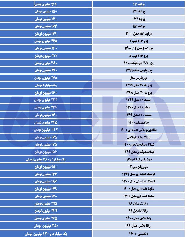 در میان این ثبات قیمت ها اما برخی از خودروهای کماکان در حال گران شدن هستند که از میان آنهای میتوان به تیبا ۲ مدل ۱۴۰۰ اشاره کرد که در ۲۴ ساعت گذشته یک میلیون تومان گران شده است و این خودرو در حال حاضر ۱۷۵ میلیون تومان قیمت خورده است و سمند lxef۷ نیز در این مدت ۳ میلیون تومان گران شده است و این خودرو در حال حاضر ۲۶۰ میلیون تومان قیمت خورده است.