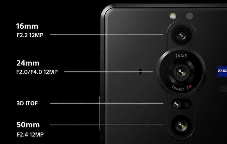 این گوشی سونی در کنار لنز ۲۴ میلیمتری به دو حسگر دیگر شامل حسگر ۱۲ مگاپیکسلی ۱۶ میلیمتری f/2.2 اولتراواید و حسگر ۱۲ مگاپیکسلی ۵۰ میلیمتری f/2.4 تلهفوتو با زوم ۲ برابری مجهز است. افزون بر این، حسگر iToF سهبعدی فاصلهی بین دوربین و سوژهی مورد نظر را برای اطمینان از فوکوس خودکار، سریع و دقیق محاسبه میکند.