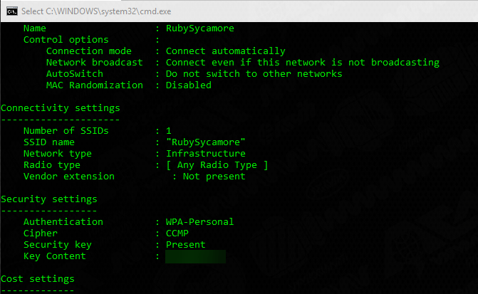 netsh wlan show profile name=”YOUR_SSID” key=clear