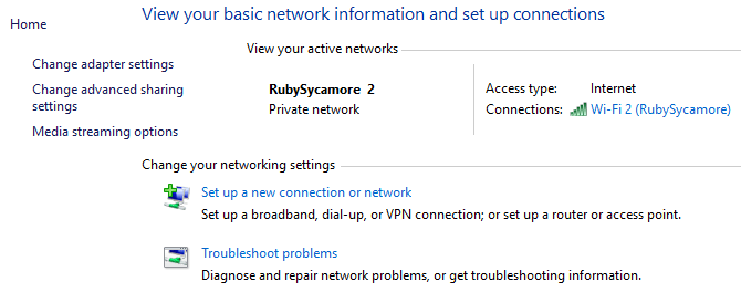 در صفحهی Network and Sharing Center شما باید گزینهای را با نام وای فای خود و در کنار بخش Connections مشاهده کنید. روی این متن آبی رنگ کلیک کنید تا صفحه جدیدی باز شود که اطلاعات بیشتری در مورد شبکه وای فای شما در آن درج شده است.