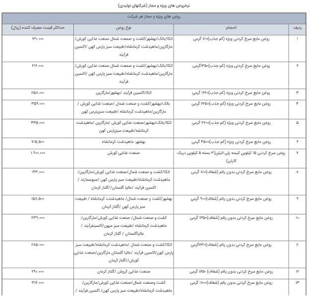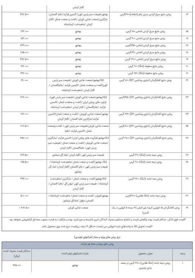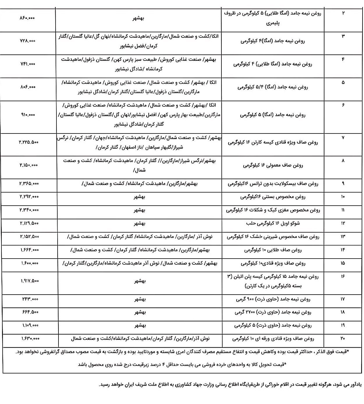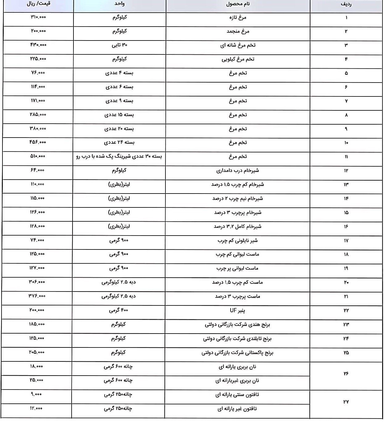 معاونت توسعه بازرگانی وزارت جهاد کشاورزی فهرست قیمت رسمی اقلام خوراکی را اعلام کرد.
