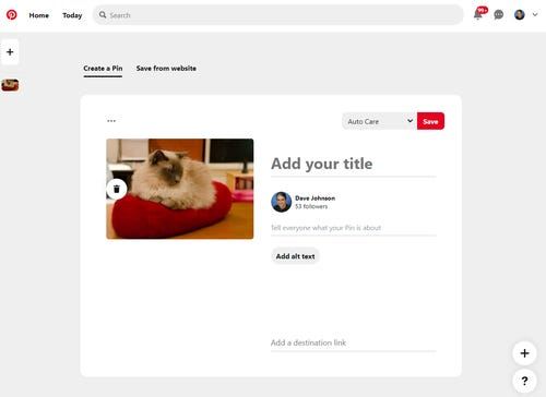 نکته سریع: اگر میخواهید با استفاده از تصویری از وبسایت پستی را ایجاد کنید، روی «ذخیره از سایت» کلیک کنید و سپس آدرس وب سایت را وارد کنید. می توانید تصویری را از سایتی که Pinterest در آن قرار می دهد انتخاب کنید.