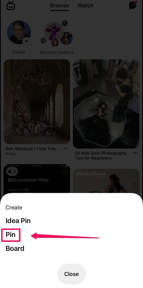 مراحل ارسال پین در برنامه Pinterest تقریباً دقیقاً یکسان است چه از اندروید و چه آیفون استفاده کنید.