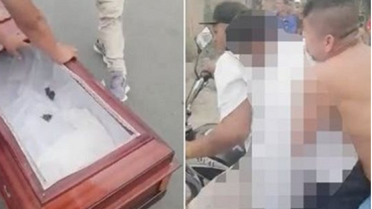 دو فرد، دوست فوت شده خود را بر روی موتور گذاشتند و بدون تابوت او را راهی قبرستان کردند. در این اقدام، موتور سوار بر روی موتور نشسته و جسد پشت او قرار گرفته و در پشت جسد، دوست دیگری بر روی موتور نشسته است تا از جسد مراقبت کند.