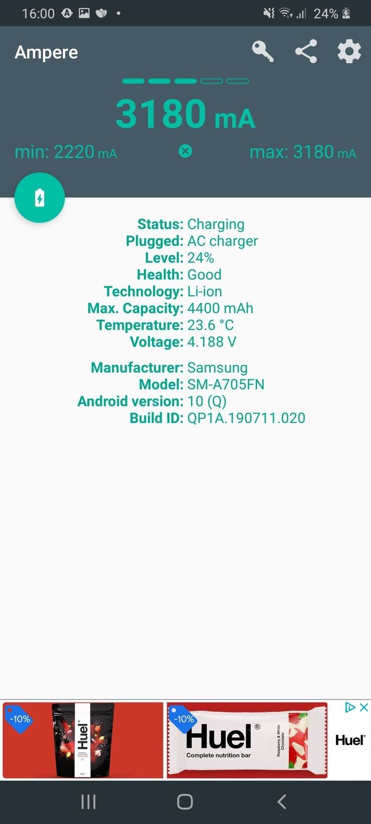 Ampere یک برنامه ساده است که نرخ شارژ و تخلیه شارژ را در هر زمانی نشان میدهد. Ampere همچنین از چندین قابلیت کاربردی بهره میبرد که میتوانید از آنها هم استفاده کنید. این اپ همچنین با توجه به ولتاژ و دما، سلامت باتری را نشان میدهد.