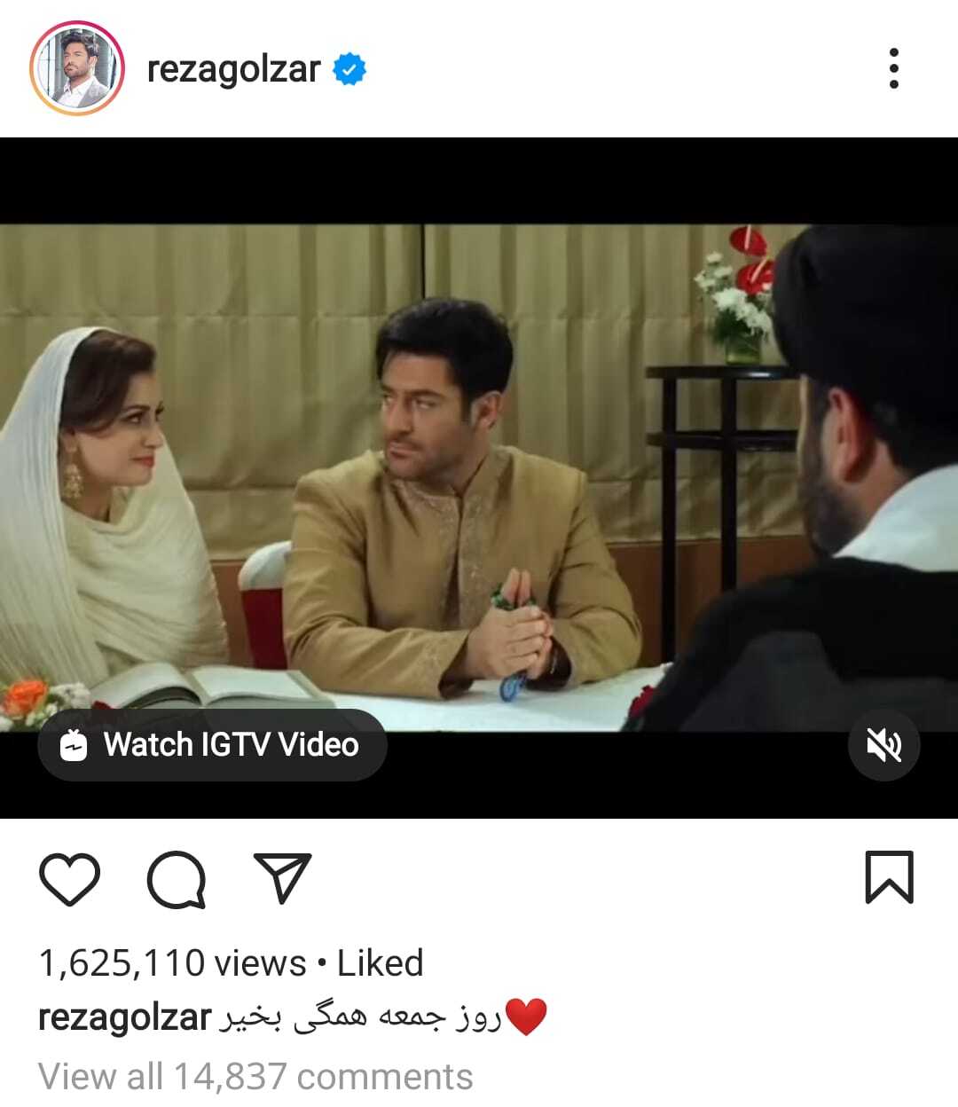 محمدرضا گلزار، بازیگر سینما، در فضای مجازی و صفحه اینستاگرامش ۱۱/۳ میلیون فالوور دارد. این بازیگر تعداد لایکهای پست هایش را بسته، اما در دو ویدیو از سه پست آخرش ۲.۴۵۰.۹۶۰ بازدید داشته است.