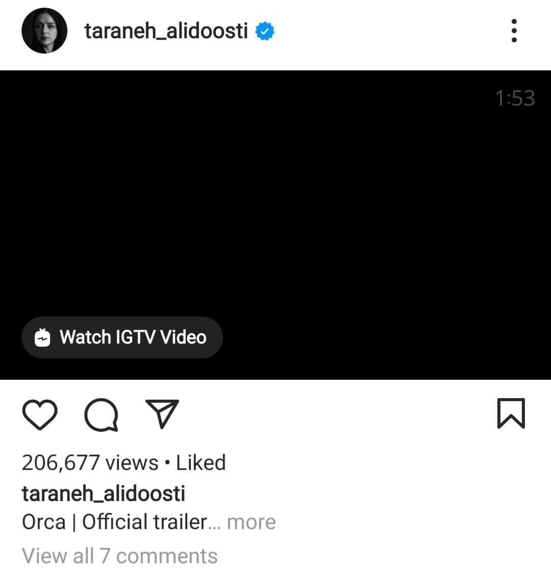 ترانه علیدوستی، بازیگر سینما، در فضای مجازی و صفحه اینستاگرامش ۷ میلیون فالوور دارد و در سه پست آخرش ۴۹۷.۶۵۸ بازدید داشته است.