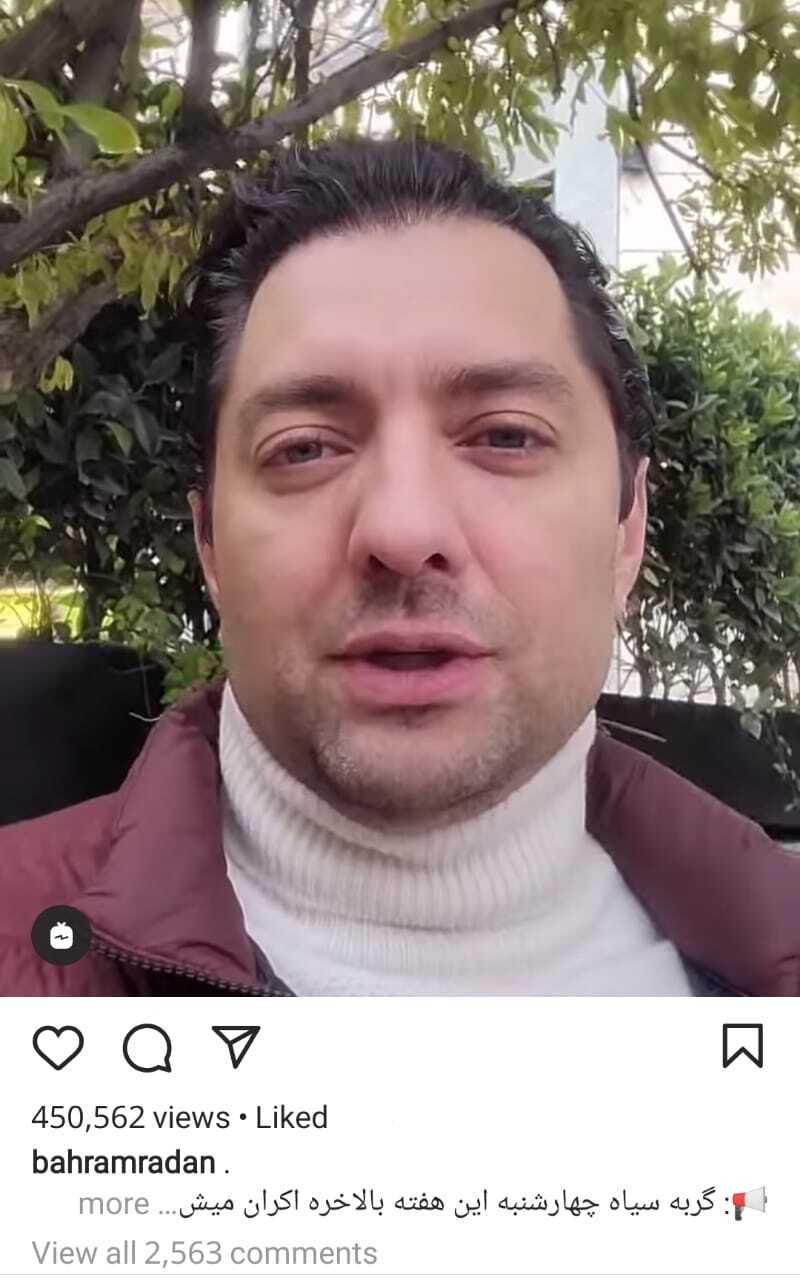 بهرام رادان، بازیگر سینما، در فضای مجازی و صفحه اینستاگرامش ۶.۴ میلیون فالوور دارد و در سه پست آخرش ۷۵۵.۳۹۲ بازدید داشته است.