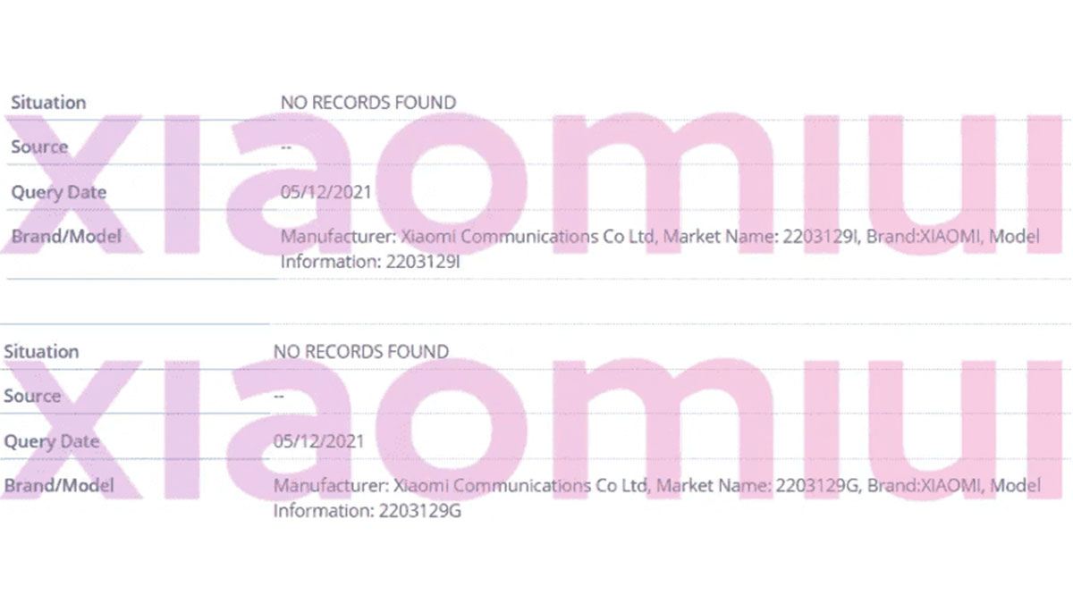 جزئیات جدیدی از گوشی‌های شیائومی می 12 لایت و لایت زوم فاش شده است. گوشی می 12 لایت با اسم کد «taoyao» شناخته می‌شود و با توجه به اطلاعات فاش شده در پایگاه داده IMEI، دو گوشی با شماره مدل‌های 2203129I و 22033129G با اسم کد taoyao دیده شده‌اند.