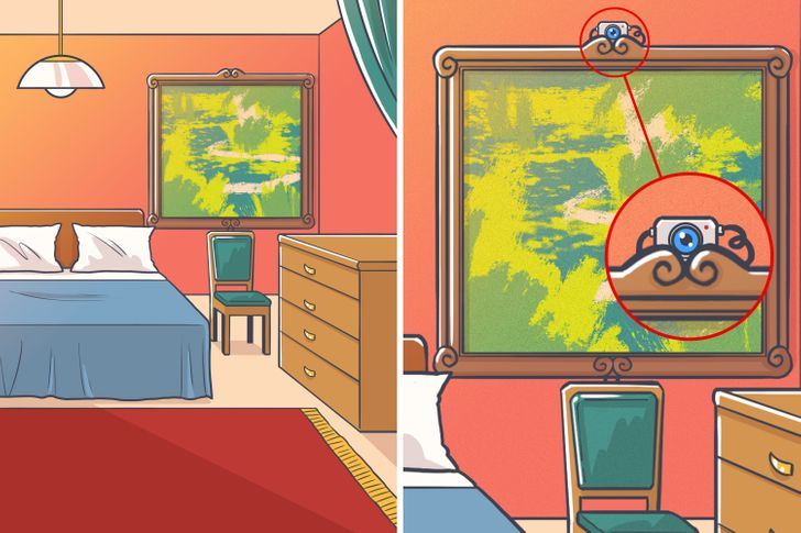 4. دقت کنید که همه اشیاء موجود در اتاق در مکان درستی قرار گرفته باشند و کار کنند. در واقع شما باید دقت کنید که همه اشیاء موجود در اتاق همان چیزی باشند که قرار است باشند و همان کاری را انجام دهند که برای آن کار ساخته شده اند. اگر وسیله ای را بر خلاف این موضوع پیدا کردید بسیار مشکوک است.