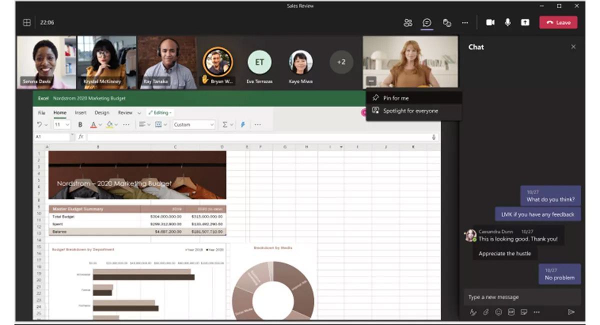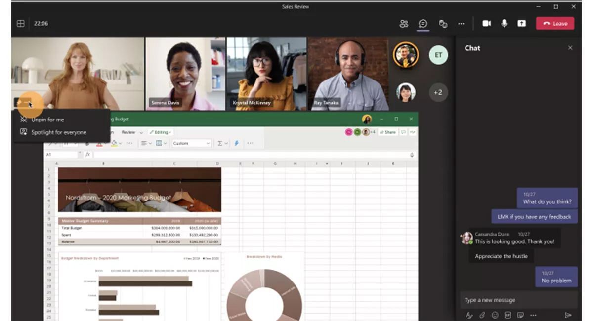 درحالحاضر، کاربران مایکروسافت تیمز میتوانند در جلسات فیدهای ویدئویی سایر شرکتکنندگان را پین کنند تا اندازهشان افزایش یابد و حتی زمانی که دیگران در حال صحبت هستند، بازهم نمایان باشد.
