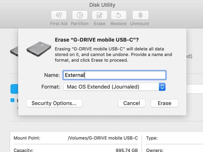 در پایین عنوان Format، یکی از دو گزینه +HFS یا APFS را انتخاب کنید. APFS استانداری مدرن‌تر برای فایل‌های سیستمی اپل است که برای اولین‌بار در سال ۲۰۱۷ برای دستگاه‌های iOS منتشر شد. همچنین پشتیبانی آزمایشی از آن در مک اواس زیرا در نظر گرفته شده بود. از زمان انتشار های سیرا، حافظه‌های SSD قابل بوت به APFS در هنگام نصب تغییر یافتند و با عرضه موهاوی، حافظه‌های فیوژن درایو و HDD نیز شامل این تغییر شدند. در نتیجه انتخاب استاندارد مناسب، با توجه به نسخه سیستم عامل مورد نیاز برای نصب صورت می‌گیرد.