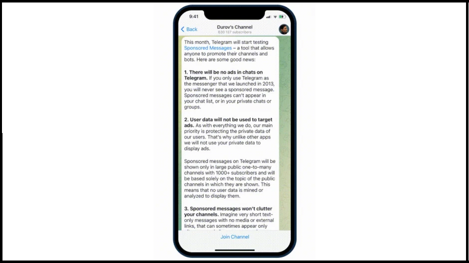 پاول دوروف، مدیرعامل تلگرام، اخیرا چند اطلاعیه در مورد تبلیغاتی که در کانالهای بزرگ با بیش از ۱۰۰۰ کاربر (از طریق MSPU) نمایش داده میشود، ارائه کرد. اگر یک یا چند مورد از این کانالها را دنبال میکنید و تبلیغات میبینید، خوشحال خواهید شد که بدانید تلگرام یک سرویس اشتراک با هدف غیرفعال کردن این تبلیغات راه اندازی خواهد کرد. البته، اگر نمیخواهید برای چنین خدماتی هزینه بپردازید، همچنان آن تبلیغات را مشاهده خواهید کرد، اما خوب است که بدانید به هرحال این قابلیت پولی وجود دارد.