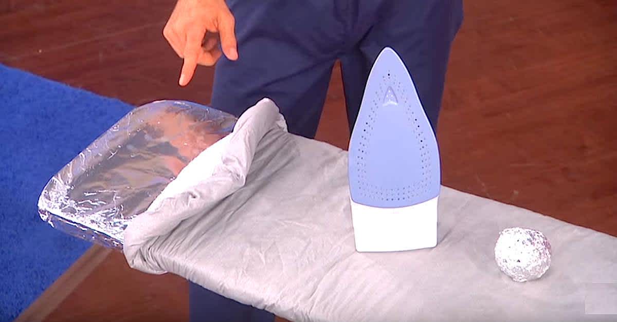 فویل را روی میز اتو قرار دهید. حالا لباس ها را فقط یک بار می توان بدون برگرداندن آن ها، اتو کرد. طرف دیگر با کمک فویل زیر روکش میز، صاف می شود.