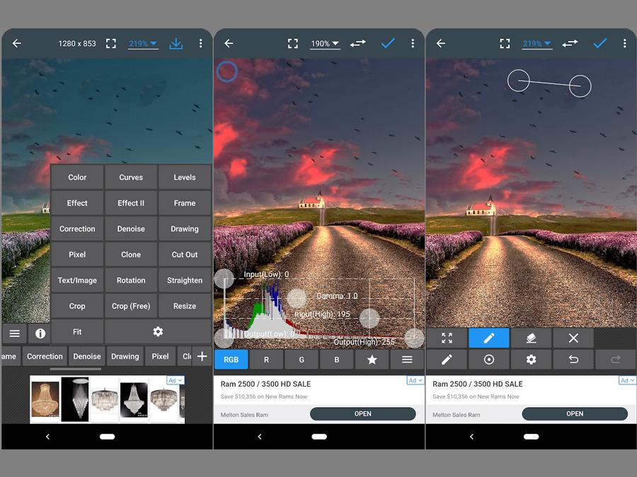 این اپلیکیشن متعلق به گوگل، طیف گستردهای از ابزارهای نوردهی و رنگی را دراختیار شما قرار میدهد. ابزارهای ویرایش موردنیاز شما شامل تنظیمات رنگ و وضوح برش، چرخش، صاف کردن و اصلاح پرسپکتیو عکس، فیلترهای سیاه و سفید، قدیمی و بافتدار، بهبود پرتره، تاری لنز، خط تصویر، نوردهی دوگانه، فریمها و متن و... همگی در این نرمافزار دردسترساند. شما میتوانید این افکتها را لایهبندی و با کمی خلاقیت ویرایشهای جالبی روی عکسهای خود ایجاد کنید.
