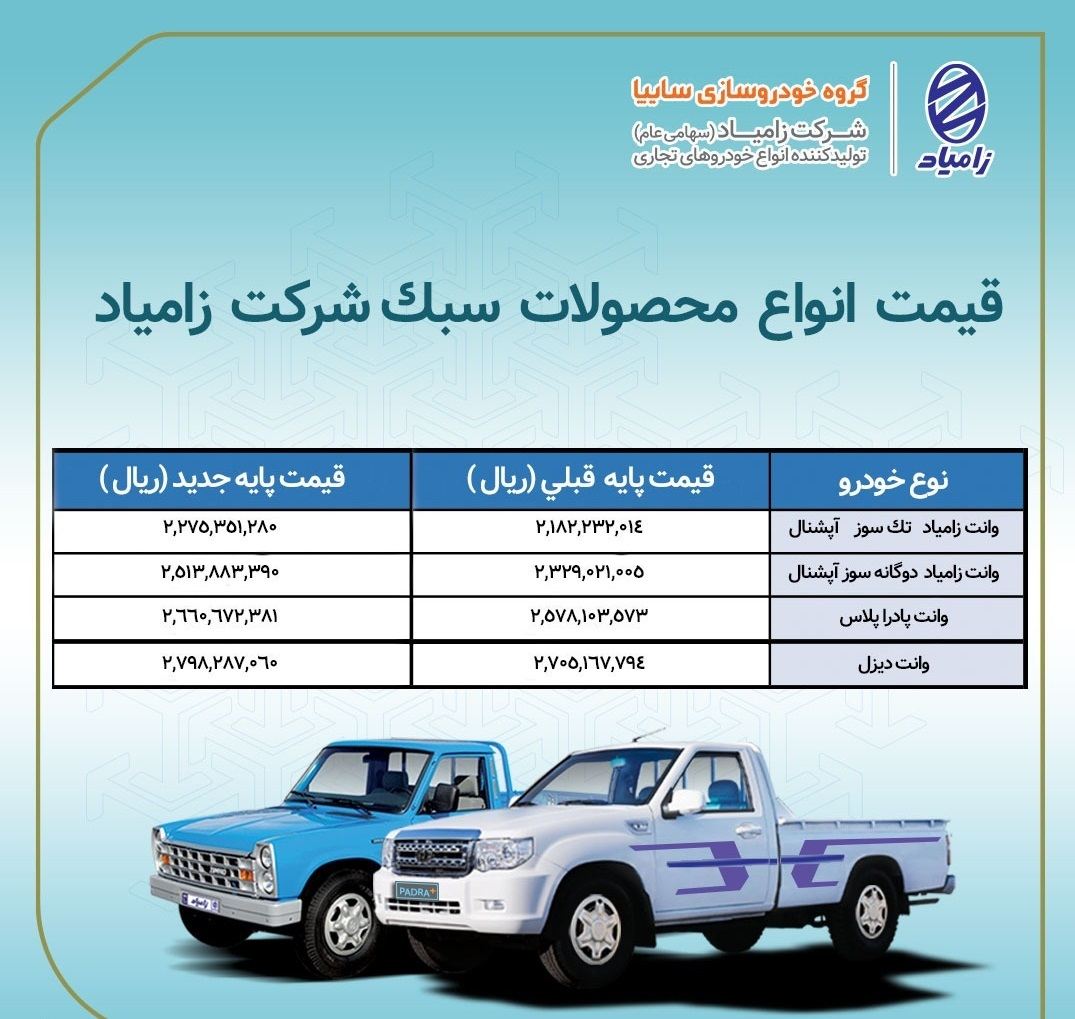 به گزارش سایت طلا،بعد از افزایش قیمت محصولات سایپا و ایران خودرو ، شرکت زامیاد هم قیمت محصولات خود را افزایش داد.