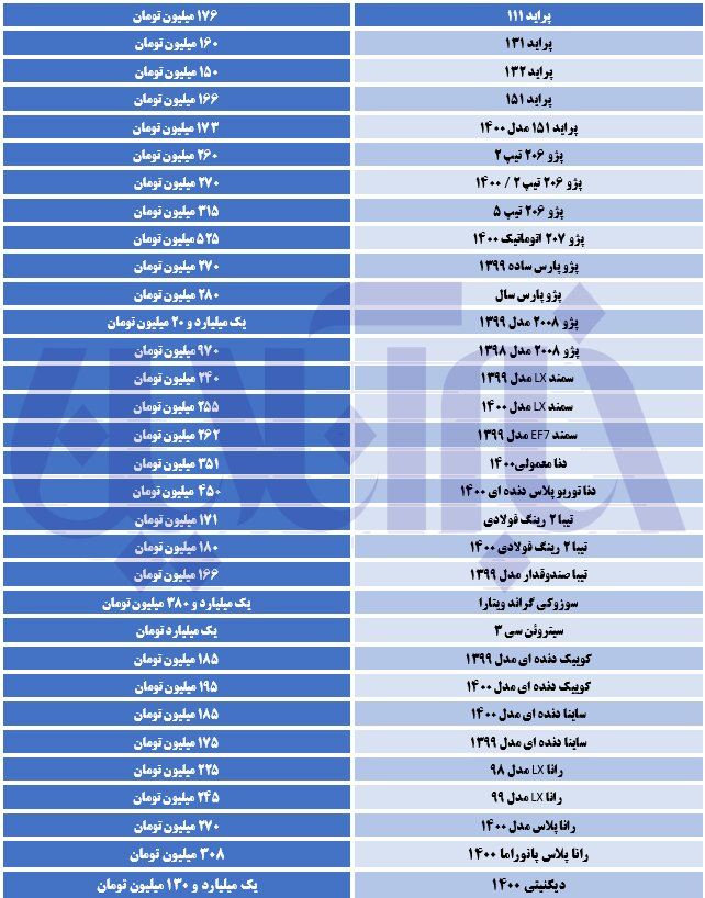 در بین خودروهای تیبا نیز این افزایش قیمت ها مشهود است به طوری که تیبا ۲ مدل ۱۴۰۰ از ۱۷۹ میلیون تومان در ابتدای هفته امروز به ۱۸۰ میلیون تومان رسیده است.