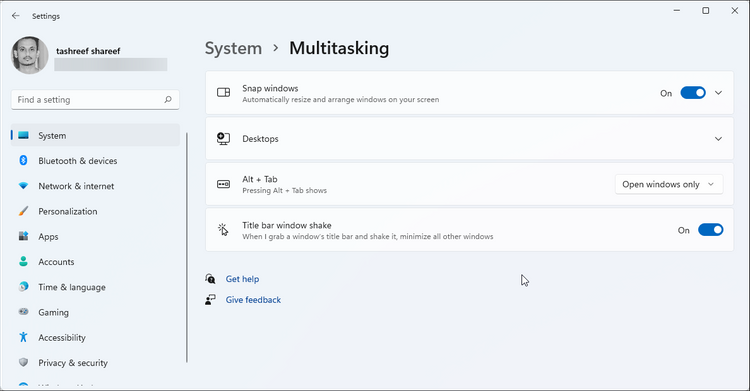به آدرس Settings > System > Multitasking مراجعه کنید.