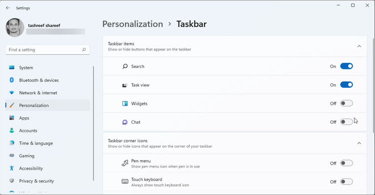 برای دسترسی به تنظیمات نوار وظیفه میتوانید به آدرس Settings > Personalization > Taskbar نیز مراجعه کنید.