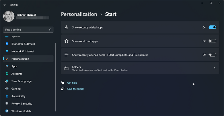 ویندوز ۱۱ دیگر به کاربر اجازه نمیدهد پوشهها را به منو استارت سنجاق کند. در عوض، شما میتوانید پوشههای سیستمی از جمله فایل اکسپلورر، تنظیمات، اسناد، دانلودها، موسیقی، تصاویر، ویدیوها و پوشه شخصی را به منو استارت اضافه کنید.