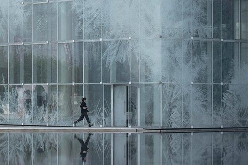 طراحی غیرمعمول این مجموعه تعداد نه بلوک به شکل معکب های یخی را در هم ترکیب می کند. هرچه به این مکعب ها نزدیکتر شوید، ظاهر ساده آنها به لطف نماهای شیشه ای که دارای کریستال های یخی شفاف و در هم تنیده هستند و به فیلتر کردن نور و دید به داخل کمک می کنند، جذابتر و پیچیدهتر می شود. طراحی کریستال های یخی نور را جذب کرده و آن را بازتاب می دهد.