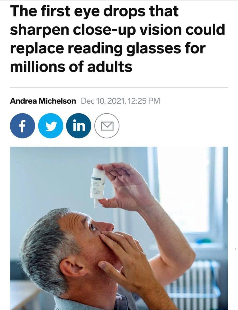 در یک پیشرفت چشمگیر پزشکی، یک قطره چشم تولید شده که ممکن است بسیاری از افراد را از عینک بی نیاز کند.